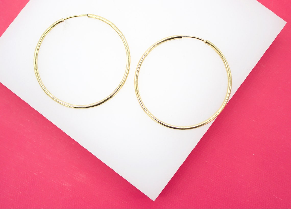 18K Gold Filled 2mm Slim Endless Hoop Stud Earrings (K111)