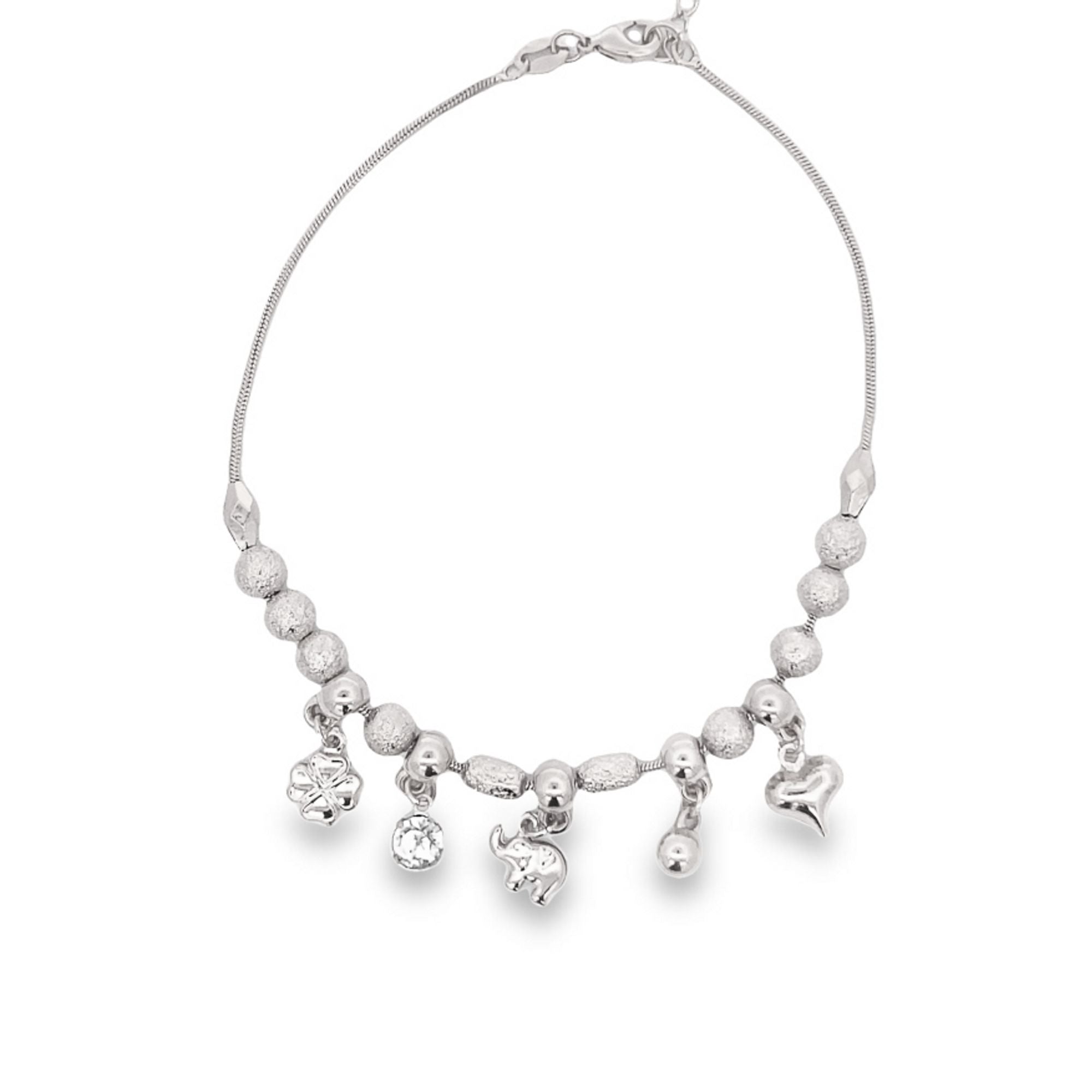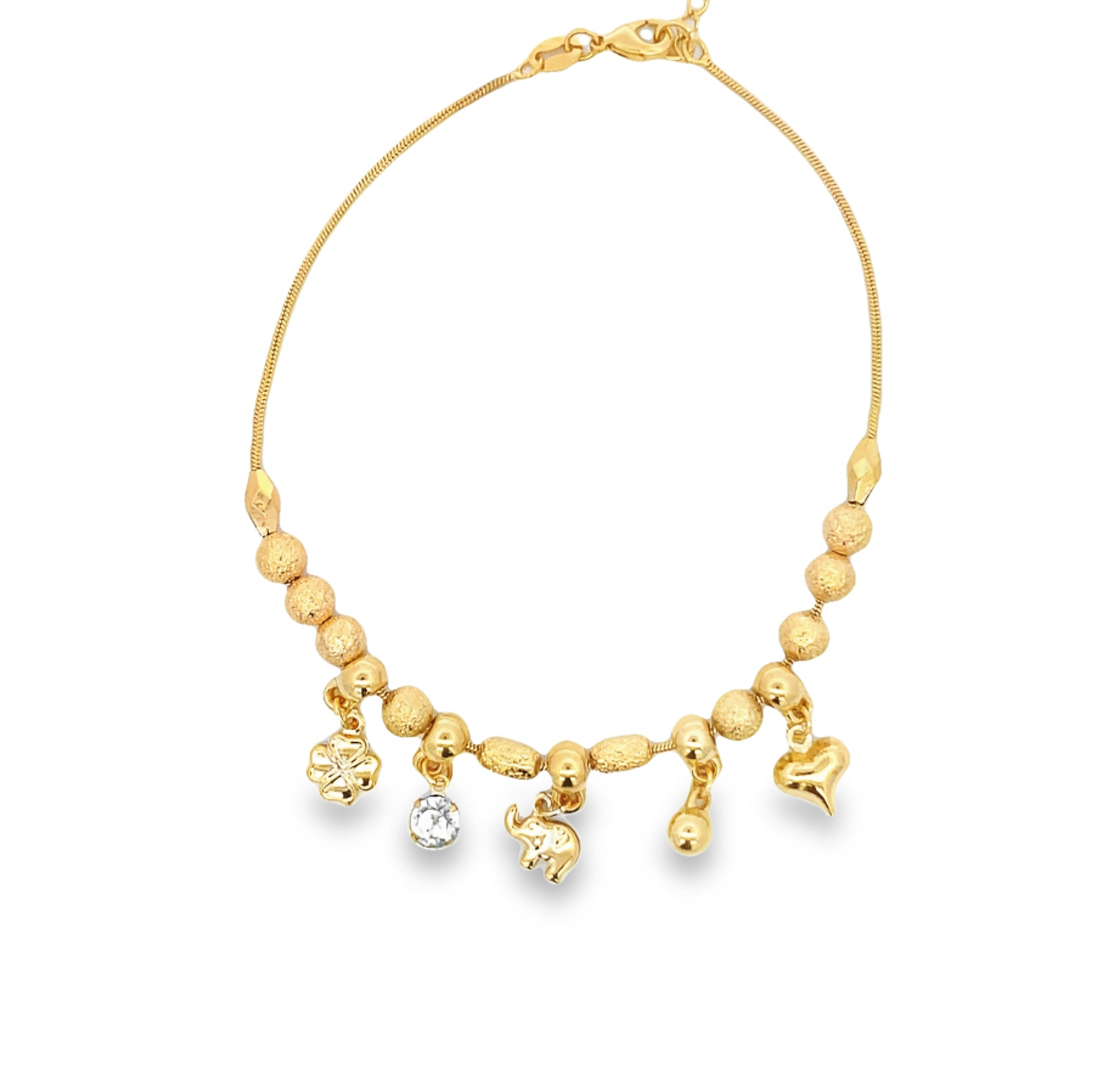 Beaded Anklet With Dangle Elephant Clover Heart Charms (E138)