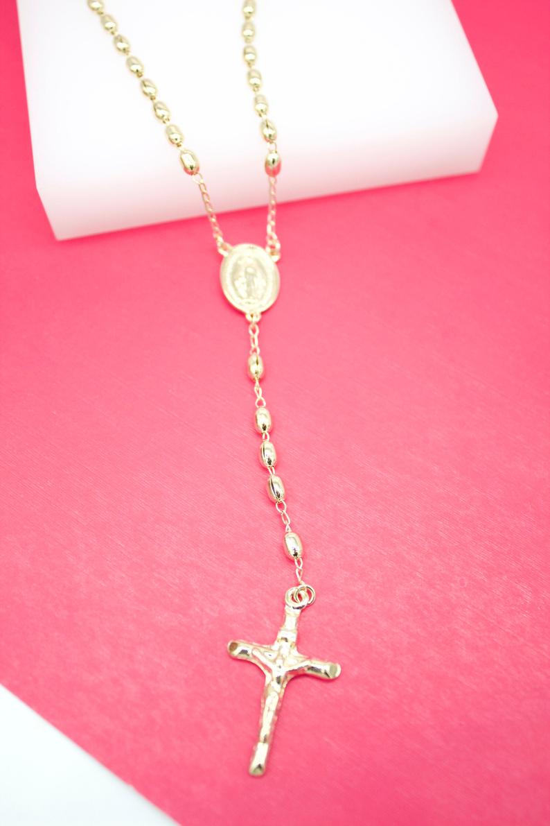 Oval Bead Catholic Rosary With Jesus Crucifix And Milagros Charm (F103A)(F41A)