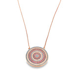 Colorful Pave Disc Circle Pendant Necklace & Stud Earrings Set (G214)