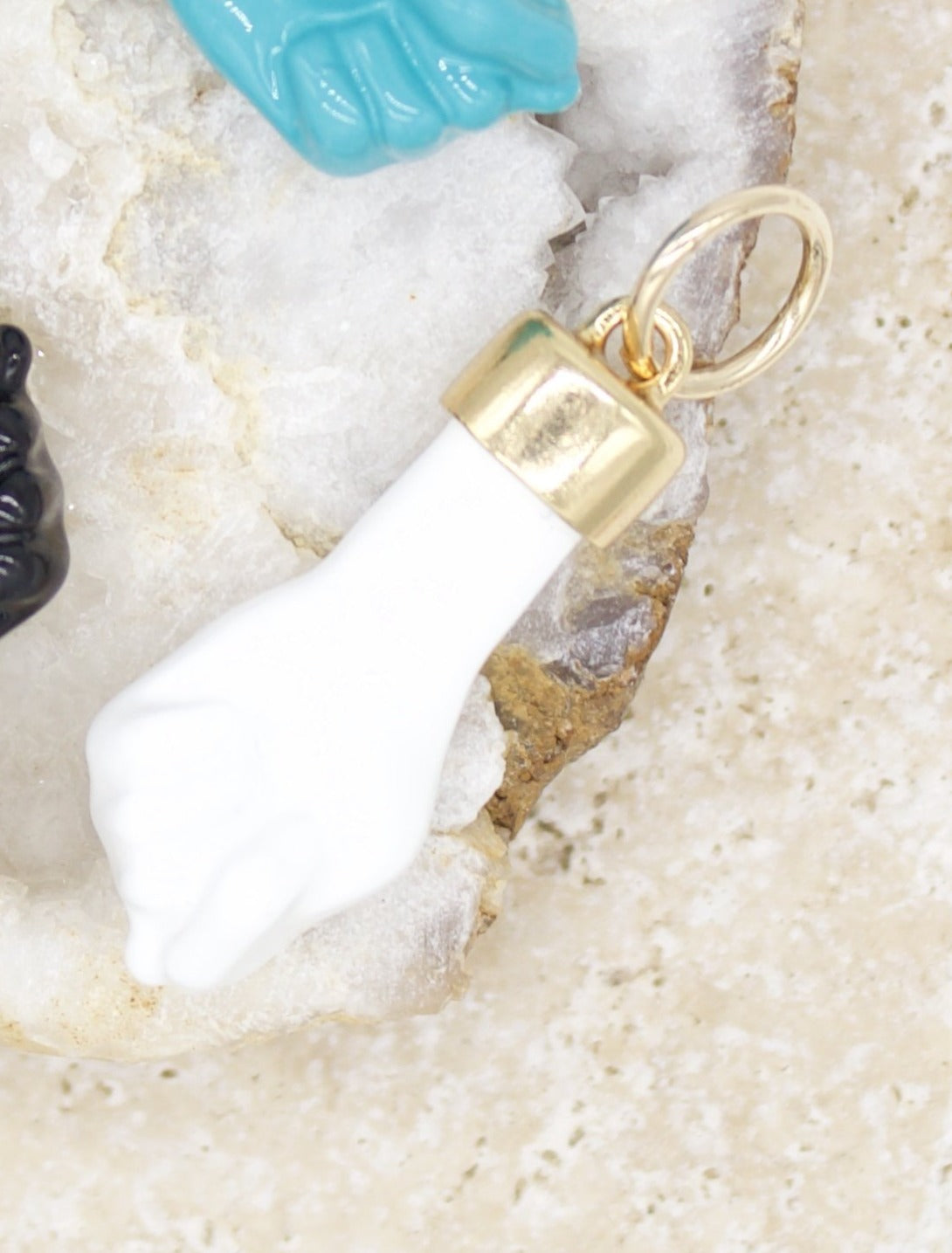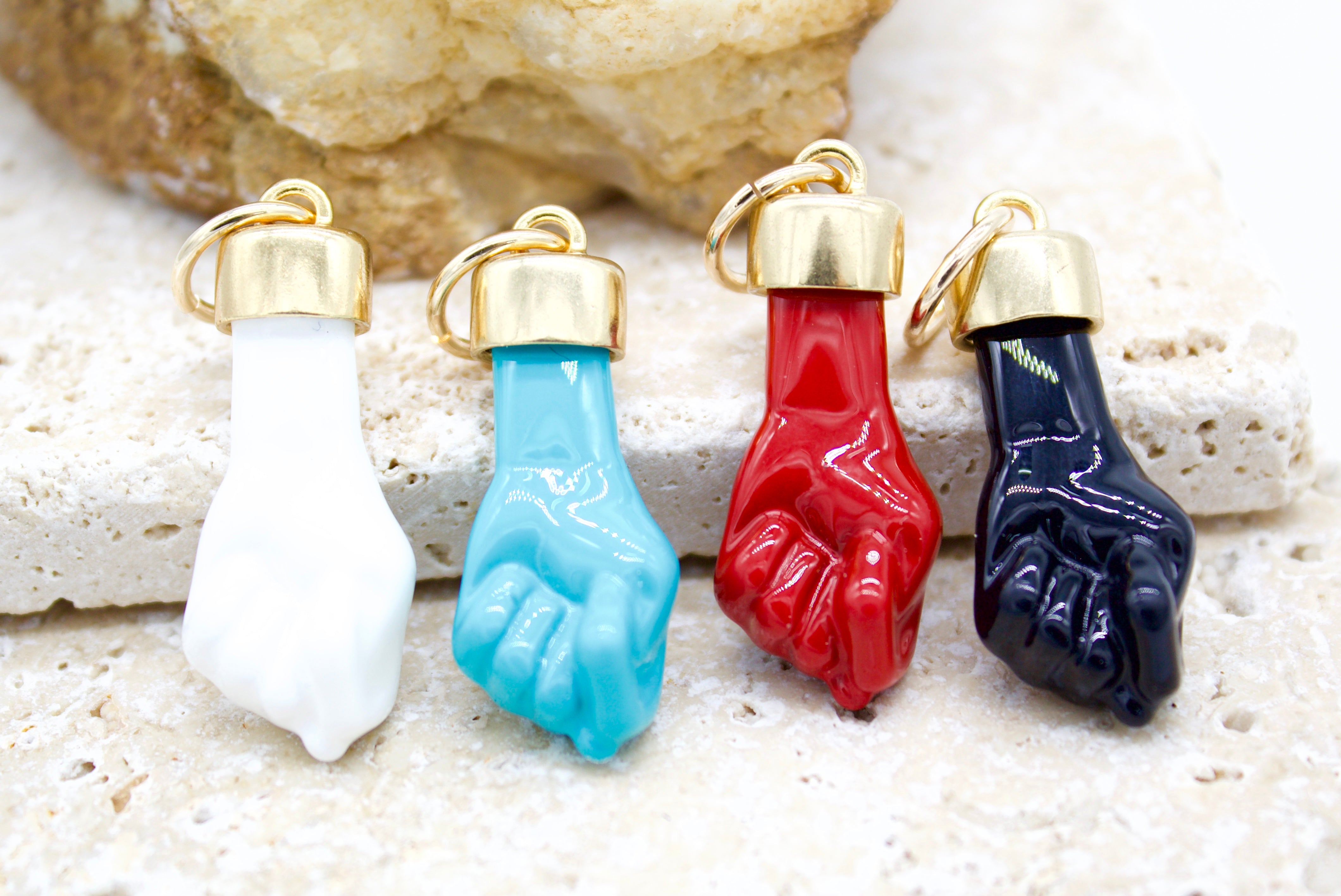Discover our Enamel Figa Hand Pendant, made from high-quality gold-filled material.