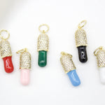 18K Gold Filled Enamel Pill Pendant With Micro Pave Cz stones (A183)
