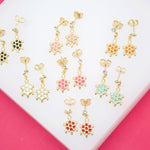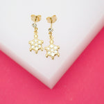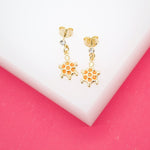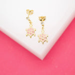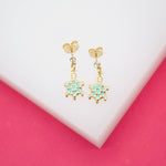 18K Gold Filled Enamel Sea Turtle Dangle Stud Earrings With CZ Stones (L115)