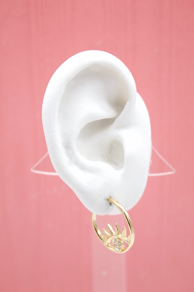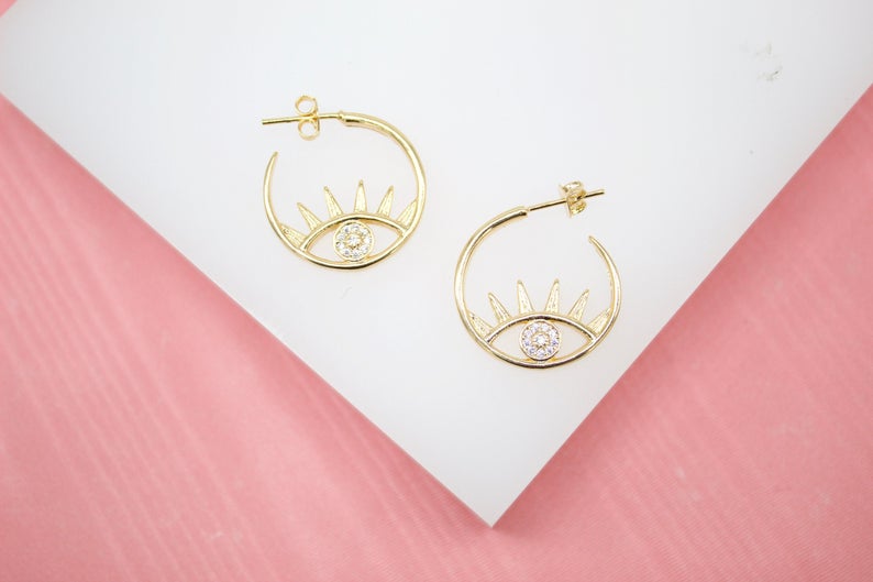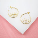 18K Gold Filled Evil Eye Open Hoop Stud Earrings With Micro CZ Stones (K230)