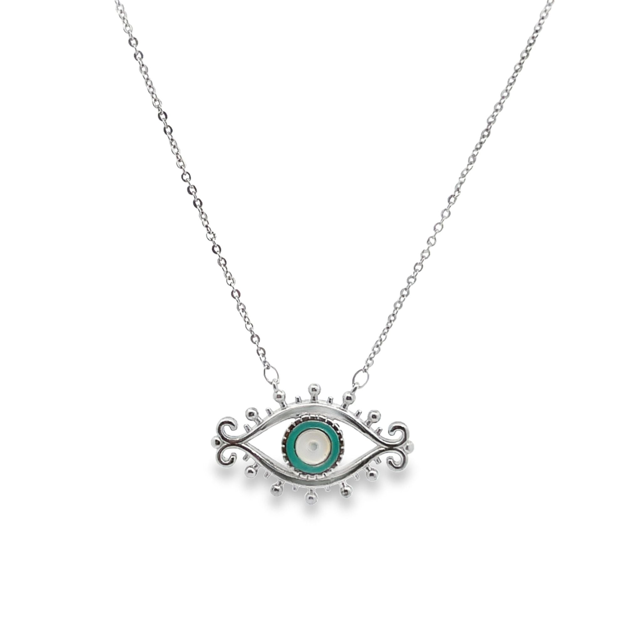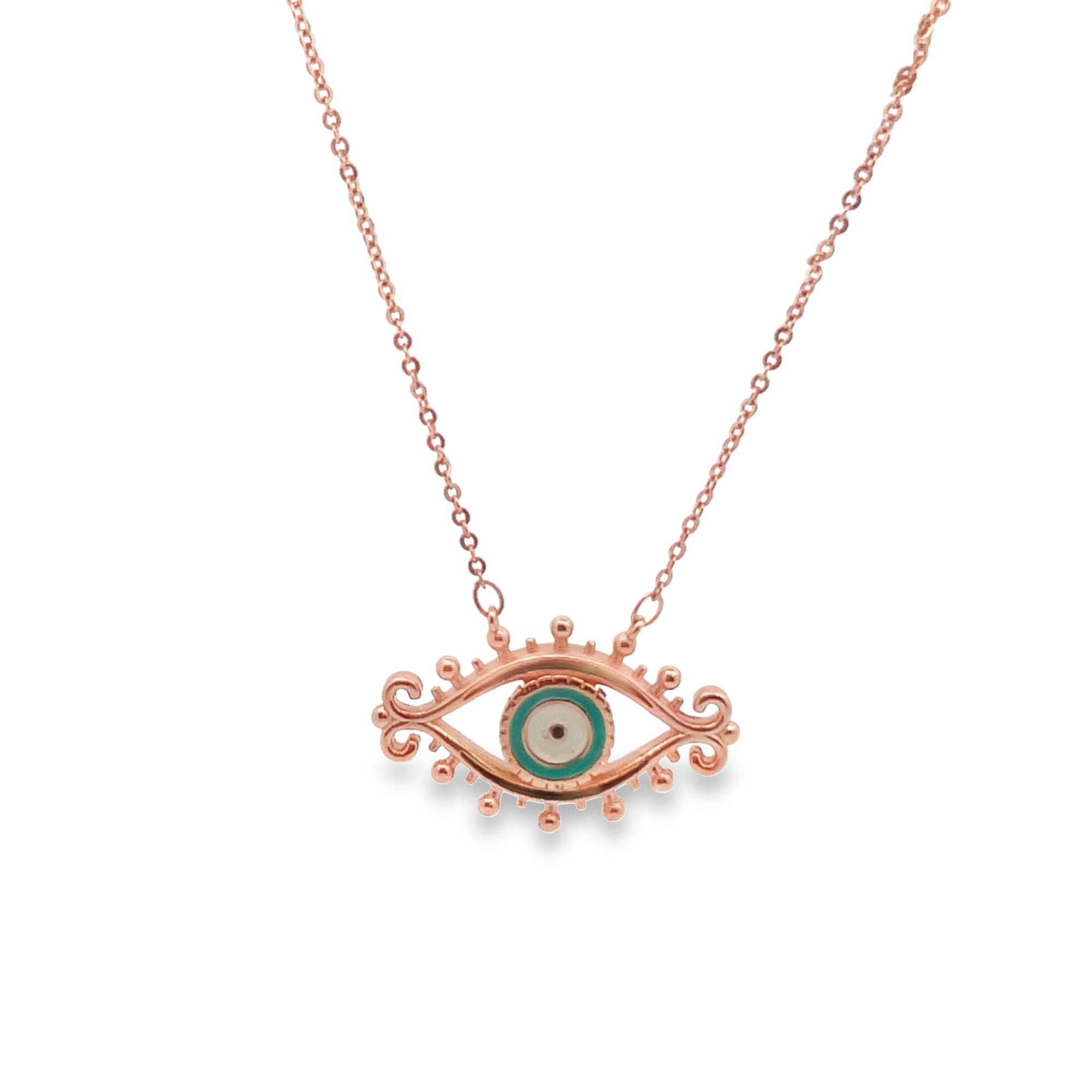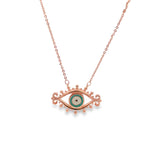 Evil Eye Pendant Box Chain Necklace With Clear Micro CZ Stones (G102)