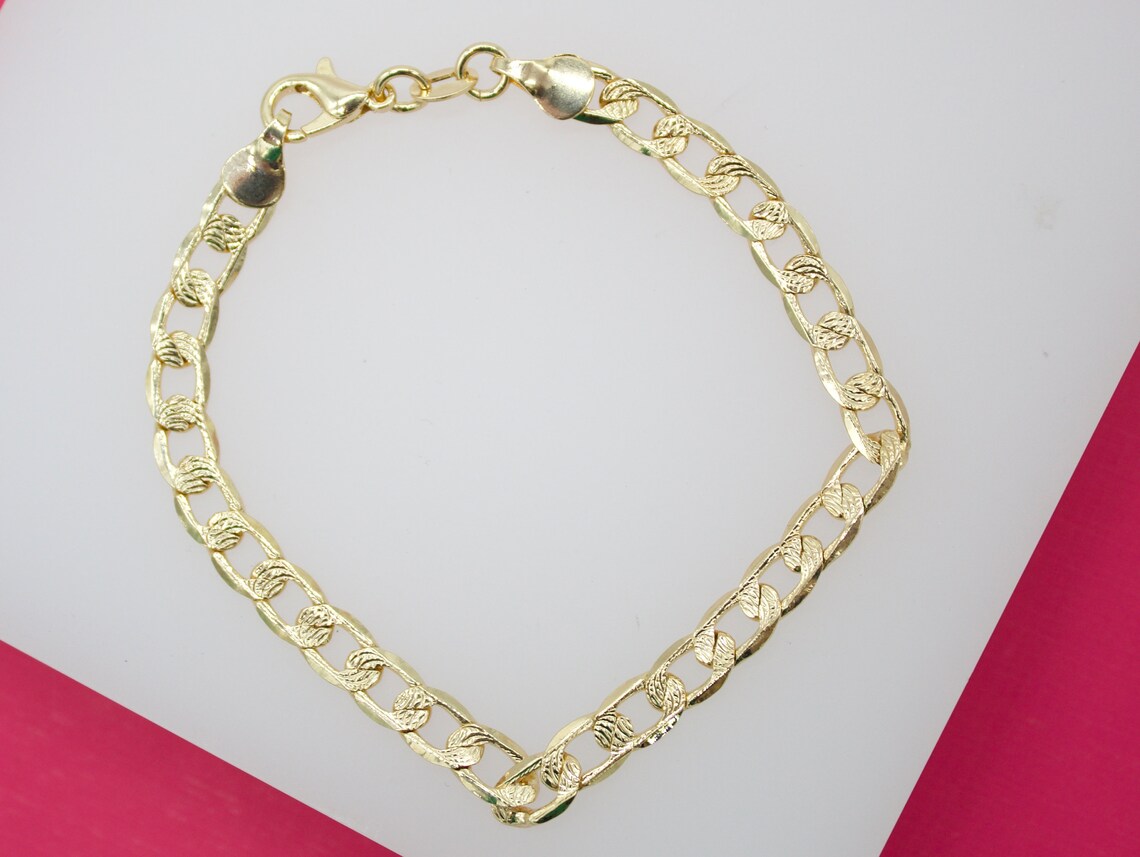 18K Gold Filled Flat 5mm Textured Cuban Chain Bracelet (I262)