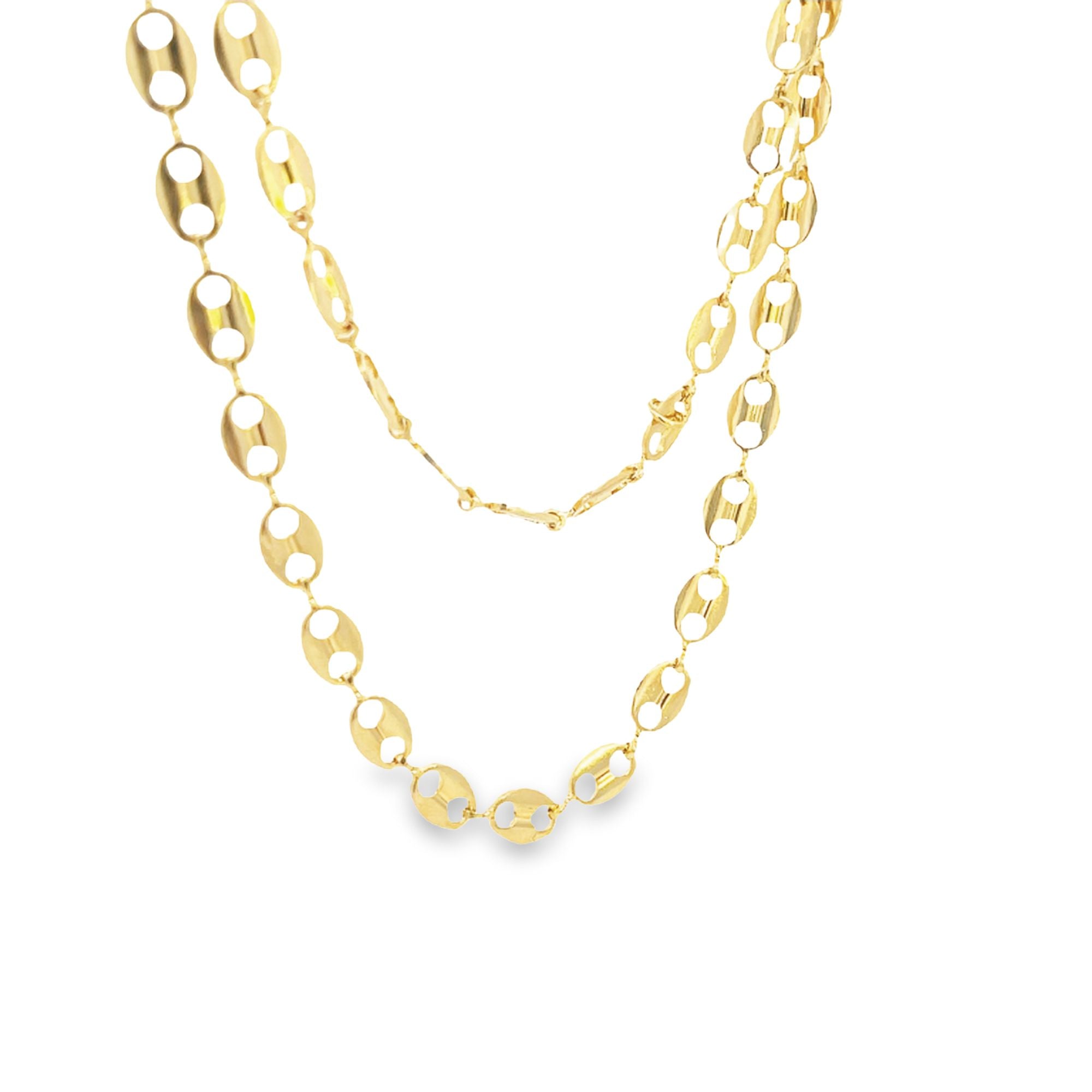 Indulge in luxury with our Gold Filled Flat Mariner Belly Chain. Made with premium materials, this belly chain adds a touch of elegance to any outfit. Show off your unique style and feel confident in the quality and design of this must-have accessory. Order now and elevate your look today!