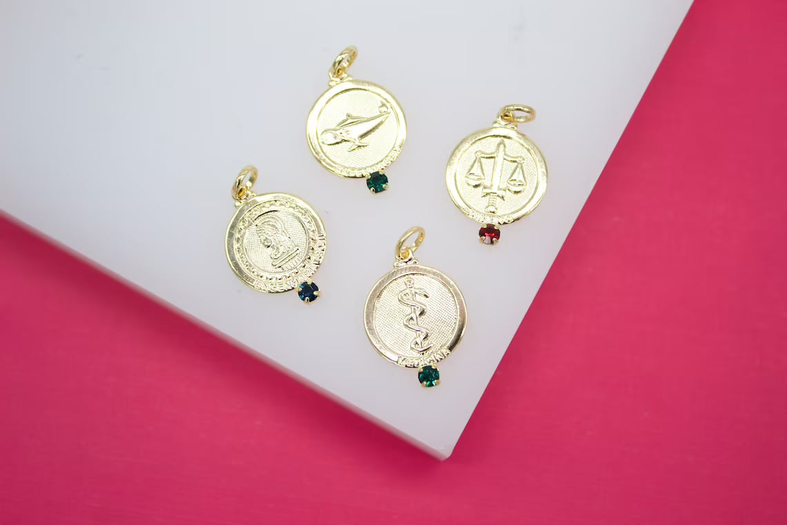 18K Gold Filled Medicine, Justice, Nurse, Engineering Pendant Charms With CZ Stone