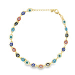 18K Gold Filled Multi-Color Colorful Evil Eye Charms Anklet (E144)