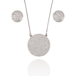Pave Disc Circle Pendant Necklace & Stud Earrings Set (G214)