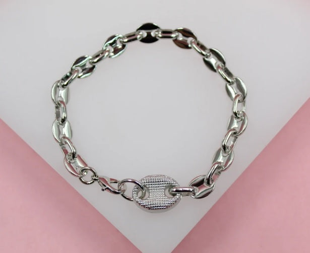 Puffed Mariner Anchor Link Bracelet (I19)