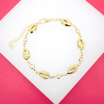 Sea Ocean Puka Shell Charm Bracelet With Round Clear CZ Stones (I167)