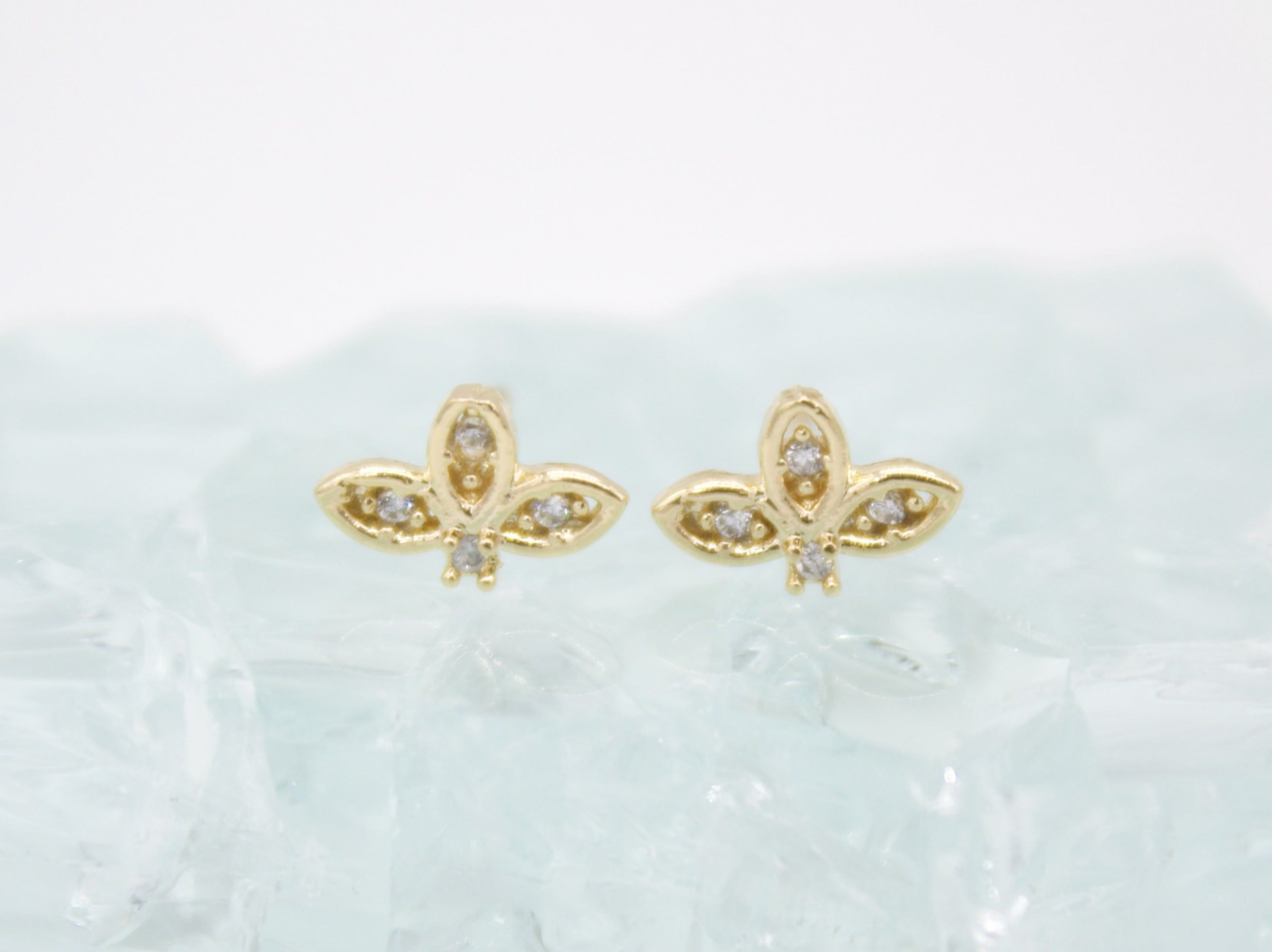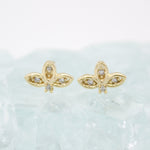 18K Gold Filled Three Leaf Stud Earrings With Micro CZ Cubic Zirconia Stone