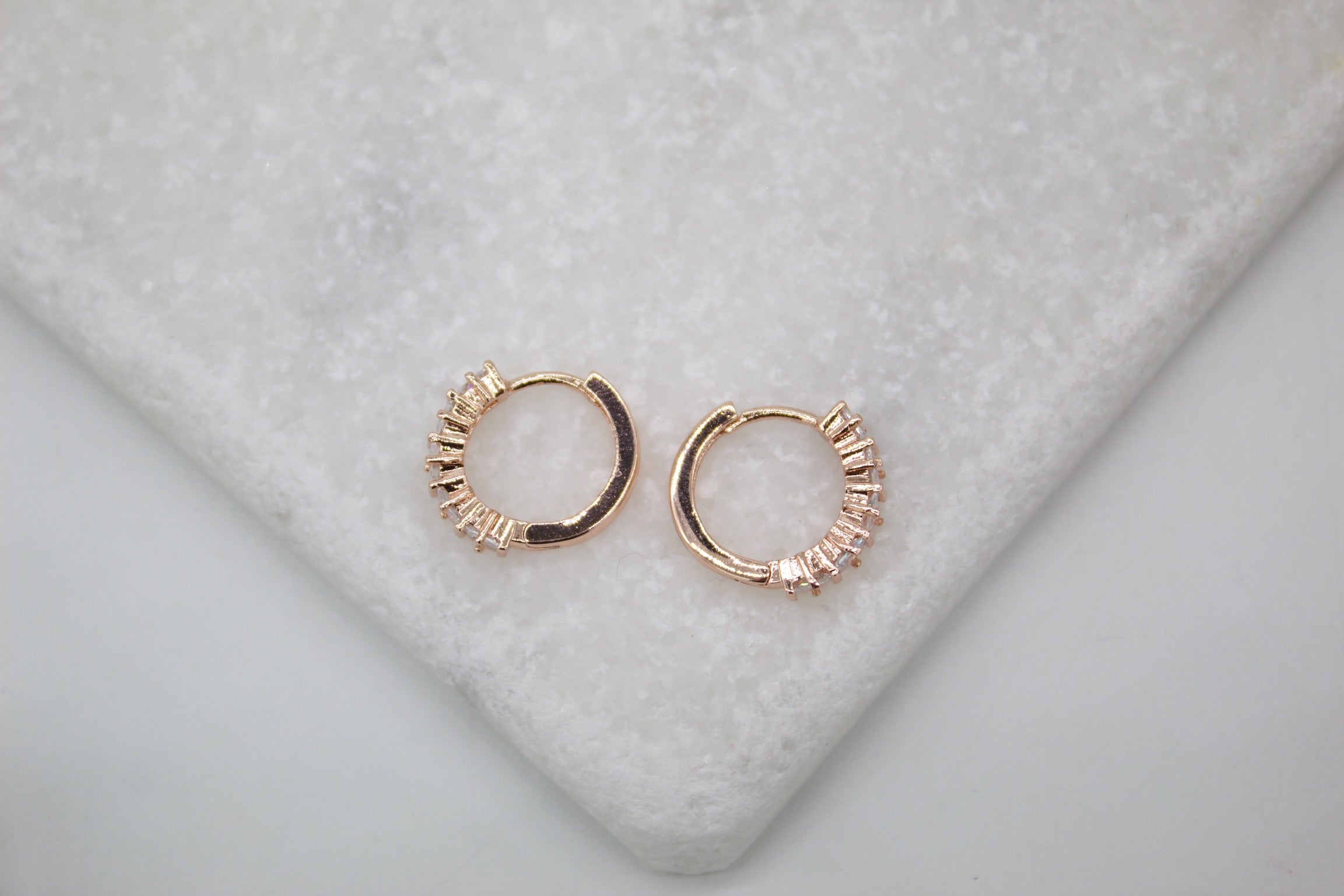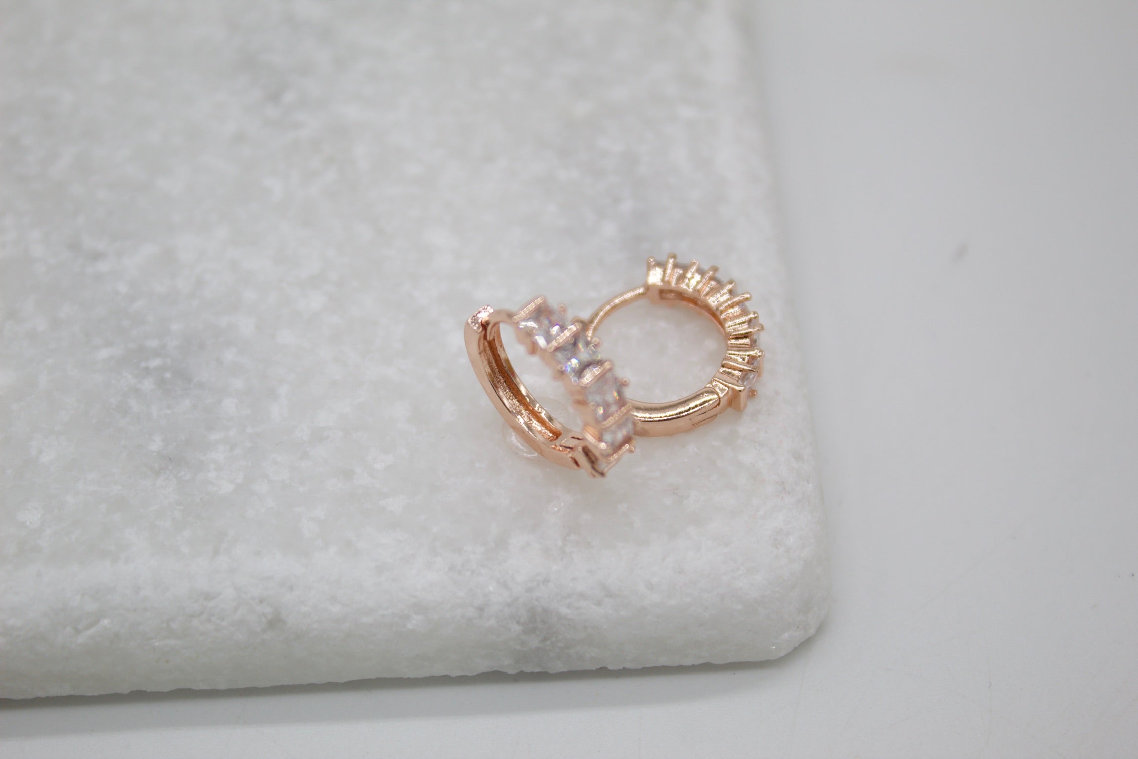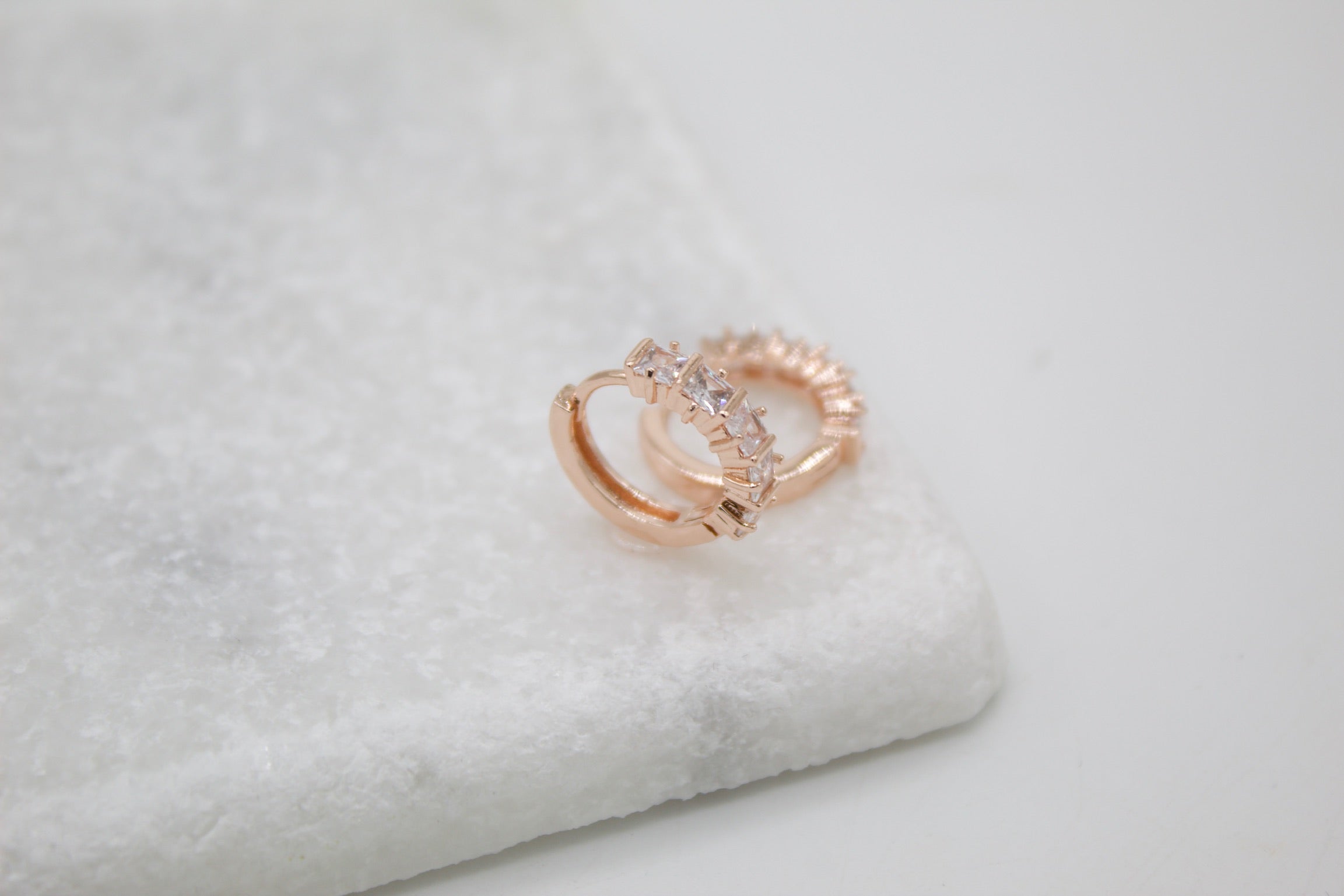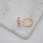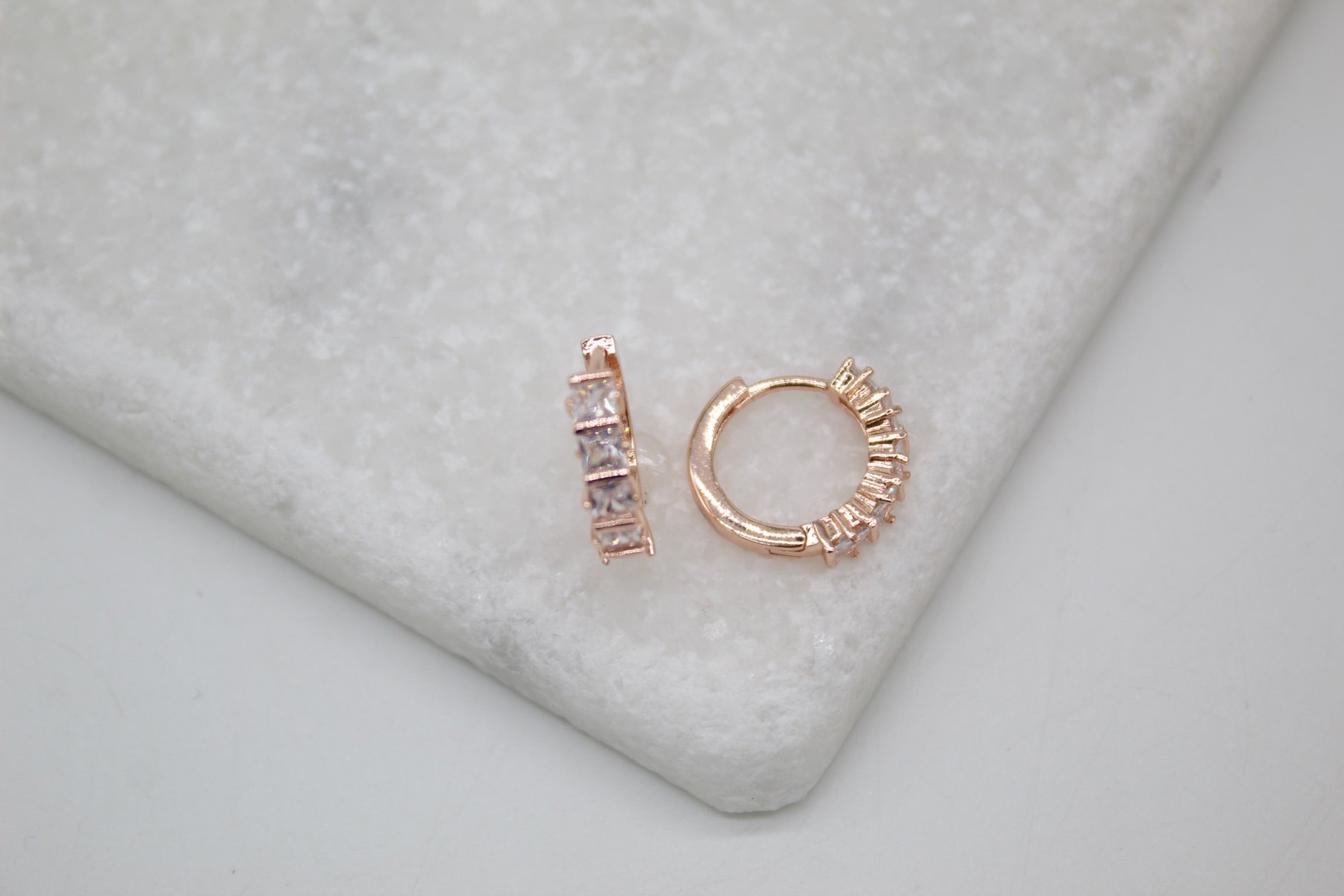 18K Rose Gold Filled Huggies Earrings With Clear Square CZ Stones (L290-291)(STYLE E)