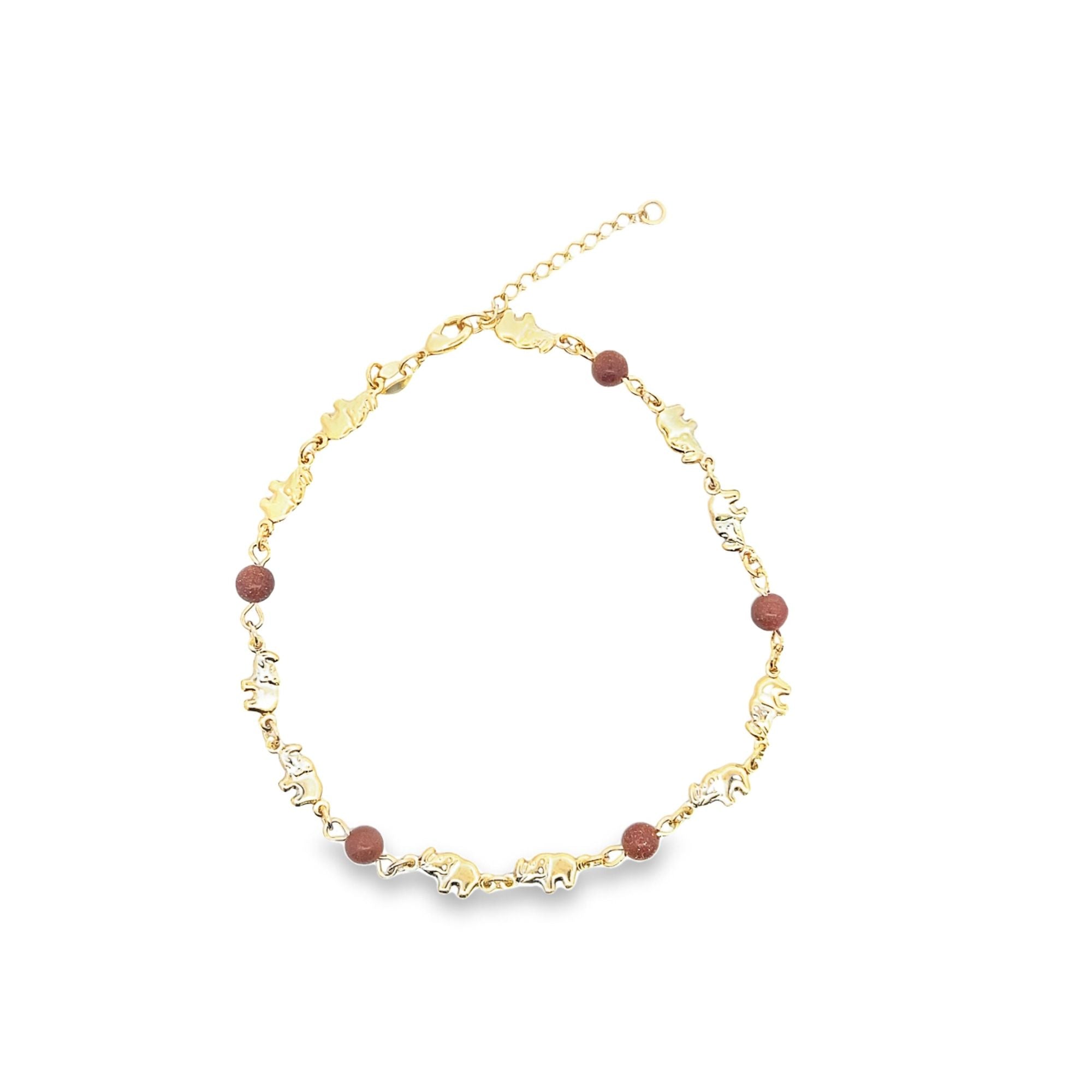 Brown Aventurine Venturina Bead Anklet With Elephant Charms (E204)
