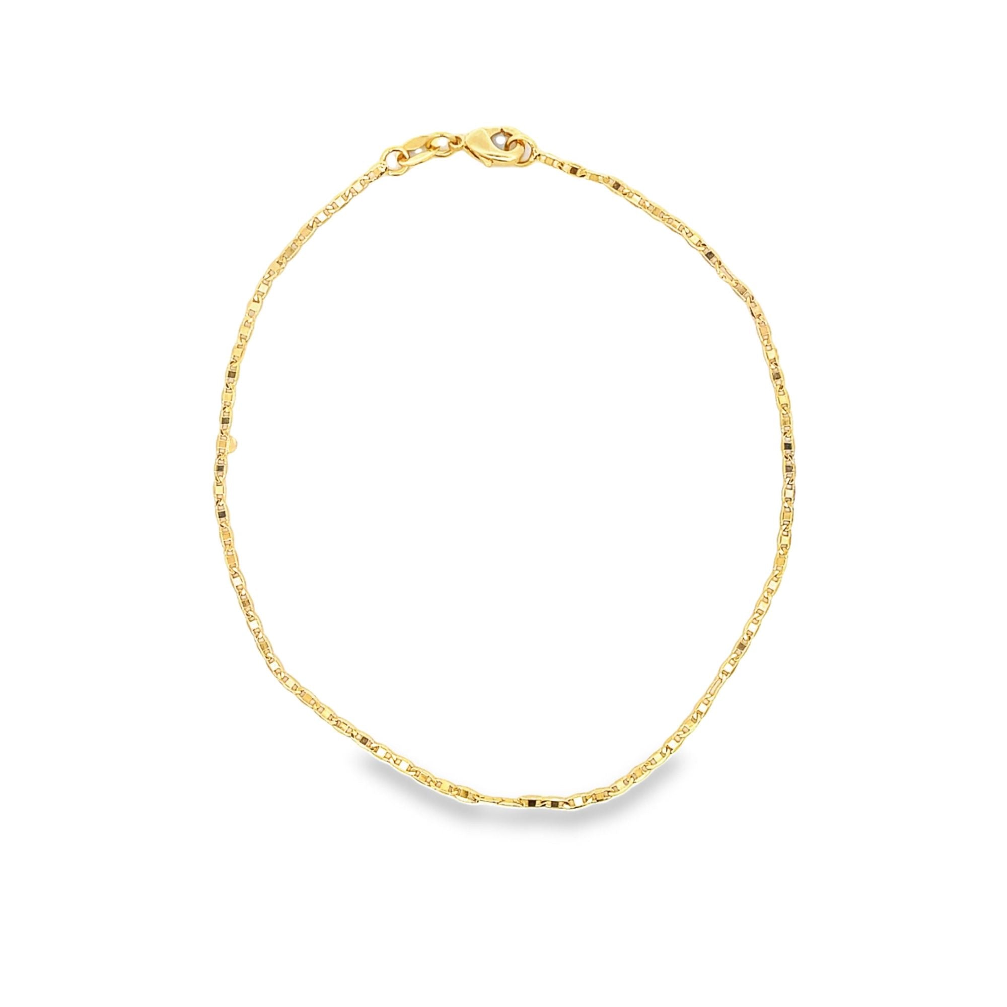 Introducing our Flat Mariner Anklet; a stylish addition to any outfit. Handcrafted from the finest materials, this anklet exudes sophistication and elegance. With its flat mariner design, it adds a touch of luxury to your ankle and complements any look. Upgrade your accessory game with our Flat Mariner Anklet.