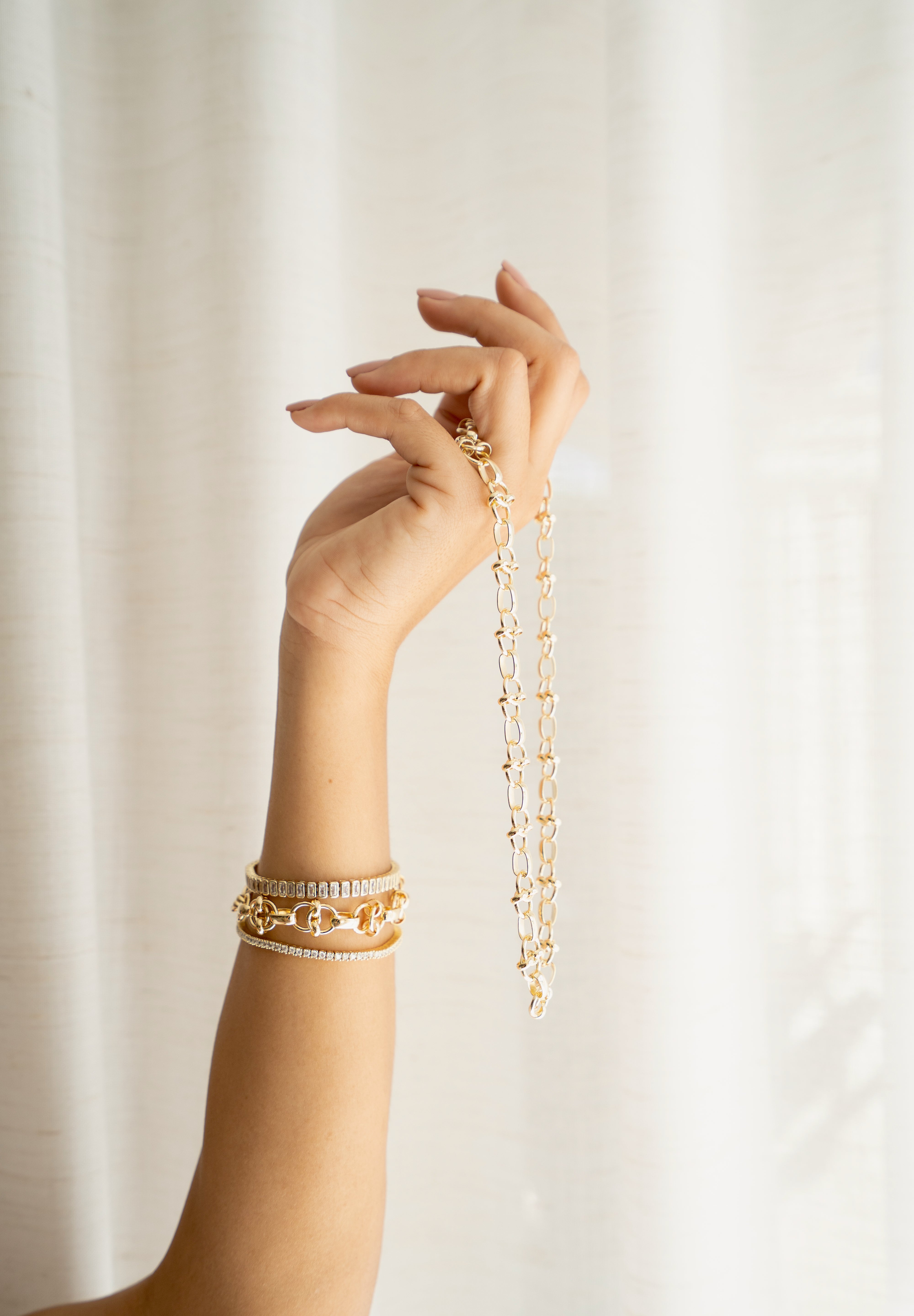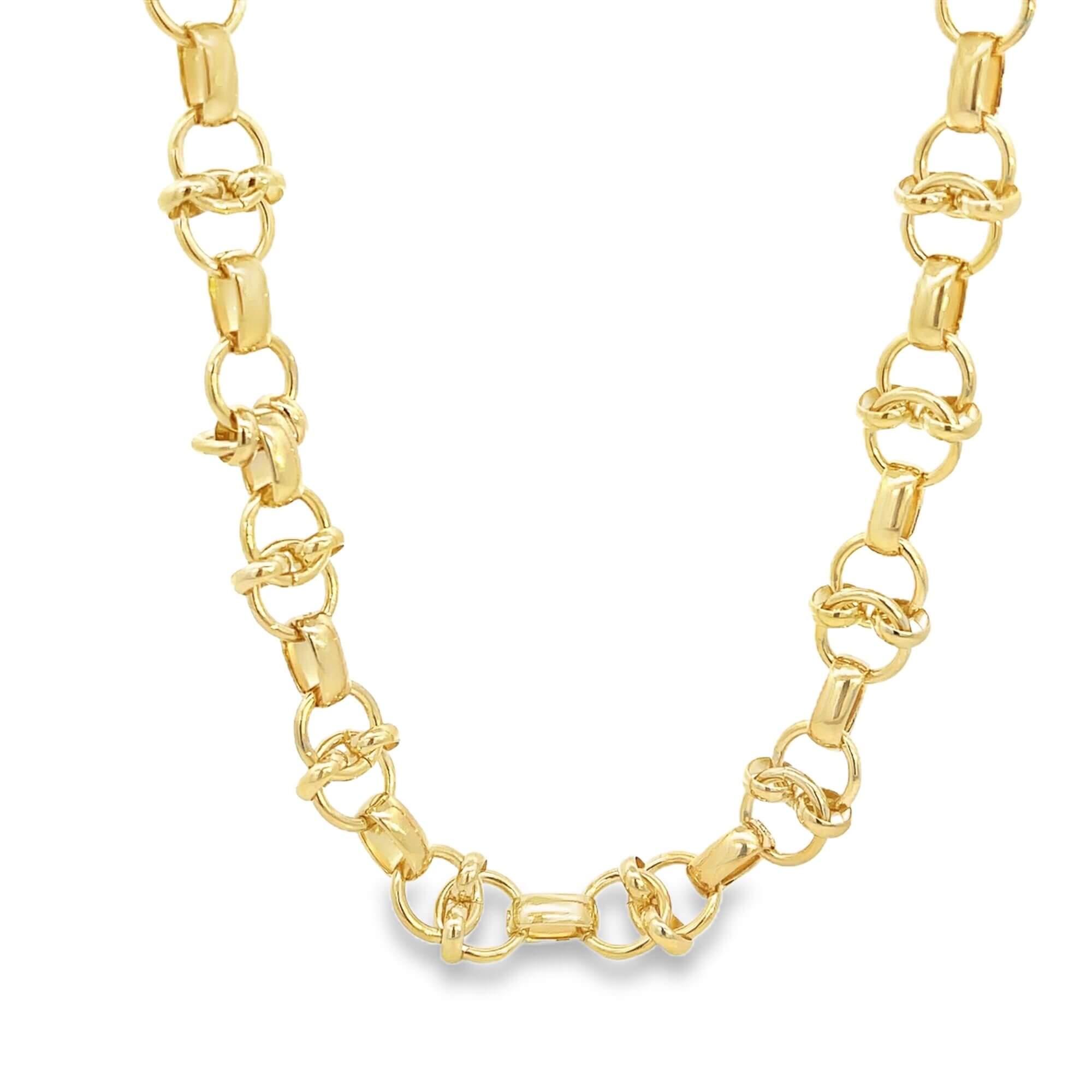 Indulge in the luxurious elegance of our Intertwined Swirl Link Rolo Necklace. Crafted with intertwining swirl links and a classic rolo chain, this necklace is a perfect combination of sophistication and style. Elevate any outfit with this timeless piece that exudes exclusivity and refinement.
