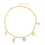Oval Cable Link Chain Butterfly, Moon, Heart, Star CZ Charm Necklace (G69A)