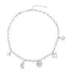 This elegant Oval Cable Link Chain Necklace features charming butterfly, moon, heart, and star pendants embellished with sparkling cubic zirconia. Designed to blend timeless sophistication with a touch of celestial allure, it adds a refined sparkle to any ensemble. Perfect for layering or wearing alone, this necklace offers a graceful statement that complements both casual and formal looks.