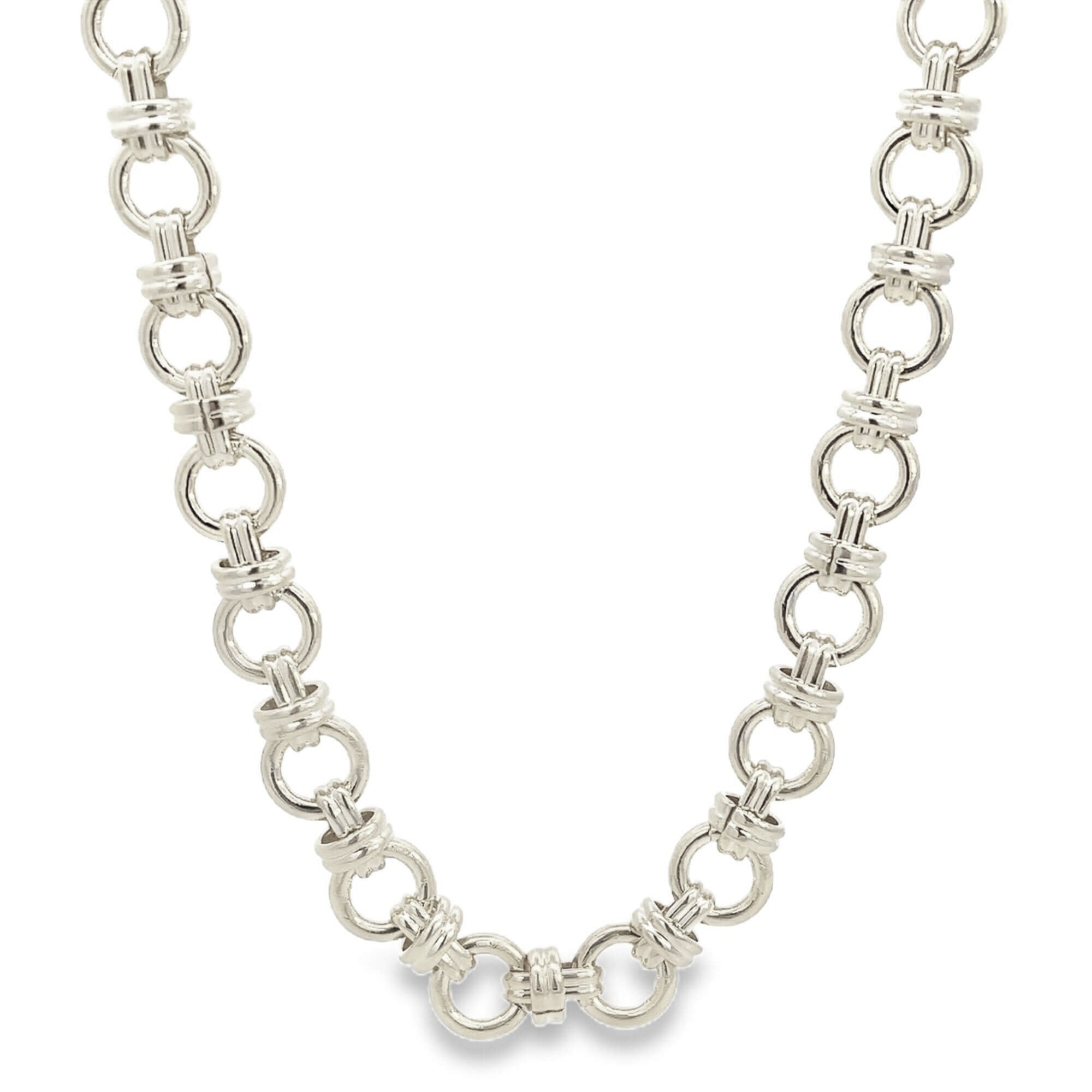 Elevate your style with our Oval Knot Link Rolo Necklace. Exquisitely crafted, its oval knots add elegance and charm to any outfit. The rolo design exudes sophistication and its versatile length allows you to wear it in different ways. Complete your look with this luxurious and exclusive piece.
