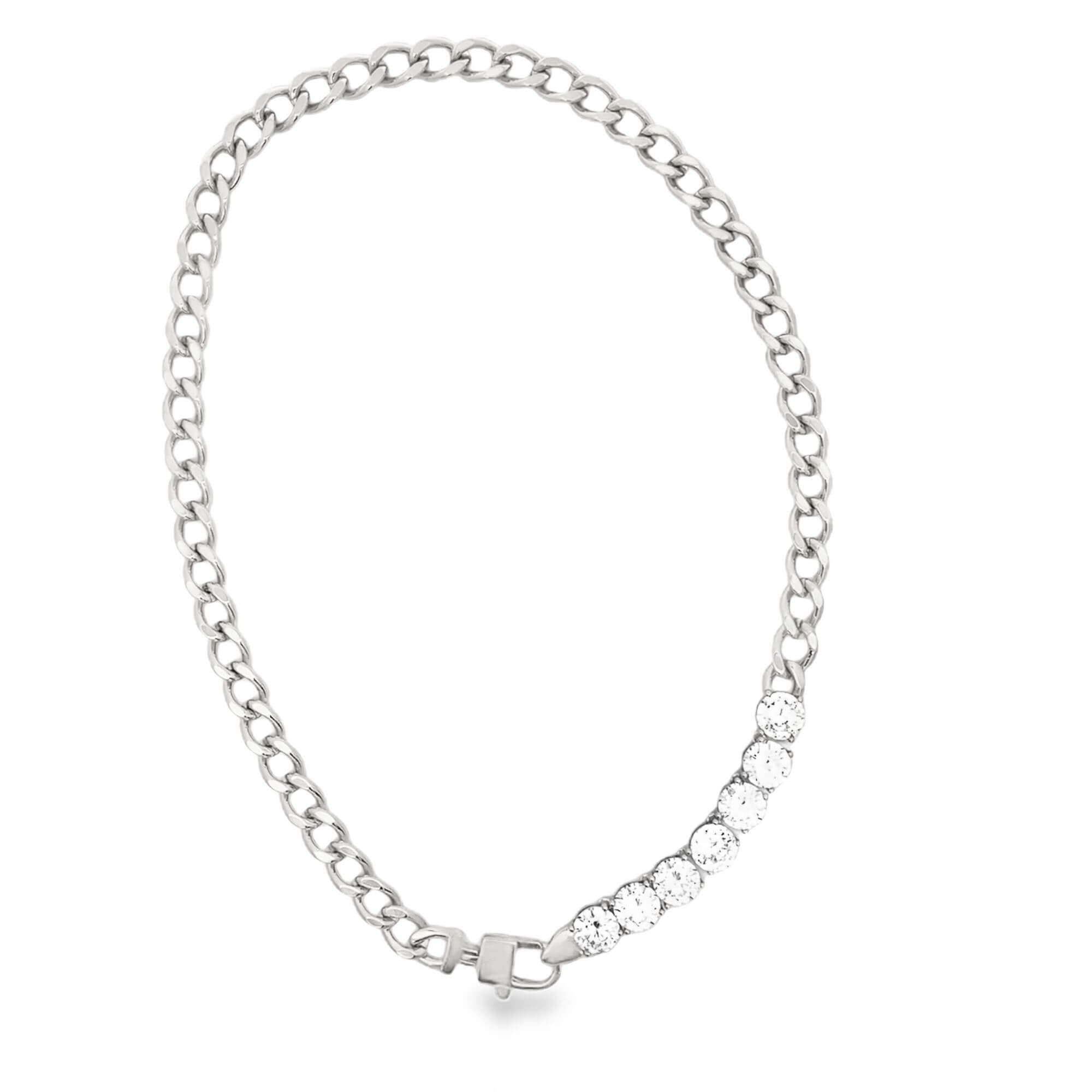 Indulge in luxury with our Thick Cuban Link Tennis Finish Necklace. Made with the finest craftsmanship, this necklace exudes sophistication and elegance. Elevate your style and make a statement with its thick design and impeccable finish. Perfect for any occasion, this necklace is a must-have for any fashion-forward individual.